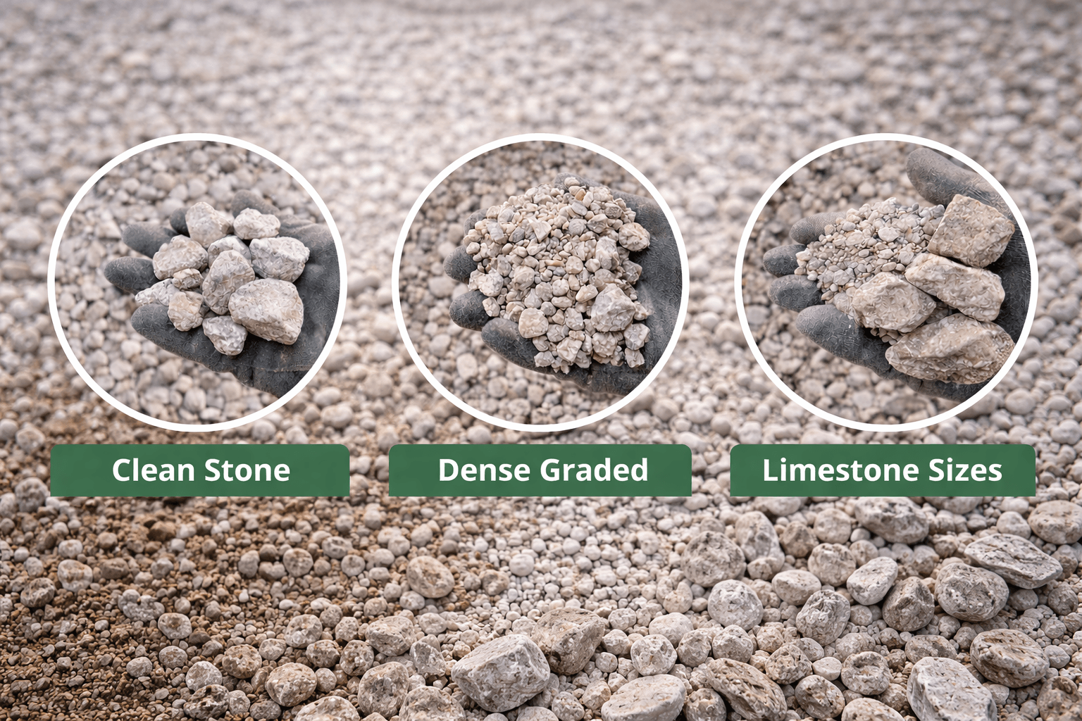 Different sizes serve different purposes. Smaller stone may be used for drainage while dense graded material is used where compaction and structural support are required.